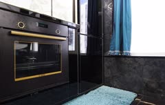 В квартире вы не обнаружите не одной батареи, все отопления встроено в стены и подоконники. Кухонная зона оснащена строго немецкой бытой техникой это: