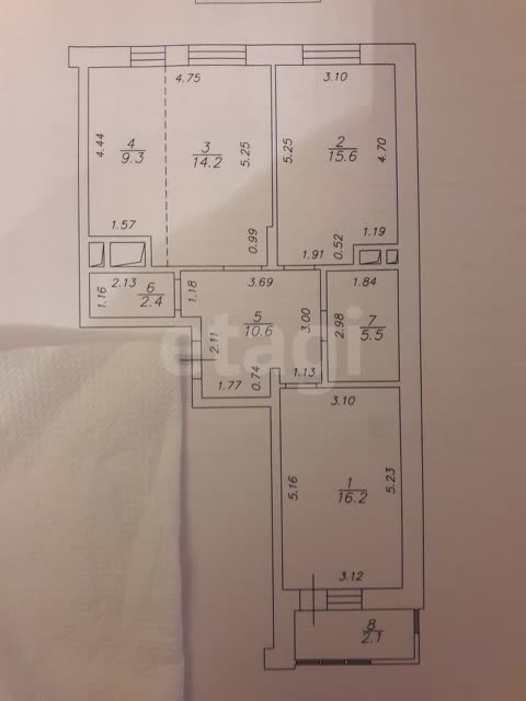 Общая площадь квартиры 75,9 м2 с учетом балкона.